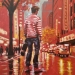 100 x 80 cm, © 2019, prijs op aanvraagTweedimensionaal | Schilderkunst | Acryl | Op doek Een drukke straat na een stevige regenbui. I love NY!