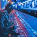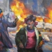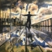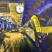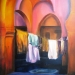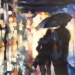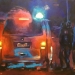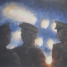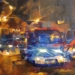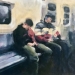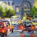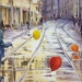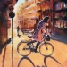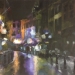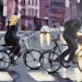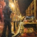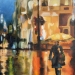 50 x 70 cm, © 2025, prijs op aanvraagTweedimensionaal | Schilderkunst | Acryl | Op doek Twee fietsers in een natte stad. Alle lichten aan. Druk onderweg naar...